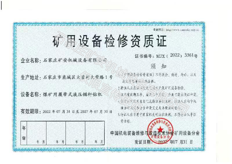 鉆機(jī)廠(chǎng)家認(rèn)準(zhǔn)礦安 Drilling rig manufacturer